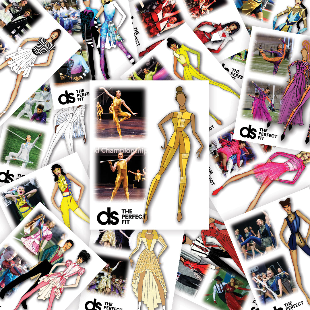 We pride ourselves on providing quality apparel that doesn't require expensive alterations. Only DS costumes are patterned individually at no additional cost. You will never see a DS garment labeled small, medium, or large. Every made-to-order design is delivered to you tagged with your student's names and measurements clearly labeled.