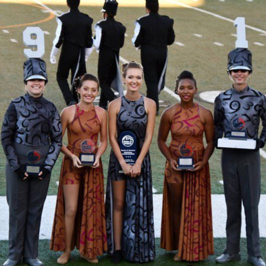 For more than 40 years, DS has outfitted champions, so you can trust we care about the details that go into making your group look as great as they sound. Emotion Tops are available in a broad range of designs and are made to move with the body of the musician athlete. Choose a selection of designs that best suits your show theme or contact us for a custom design.