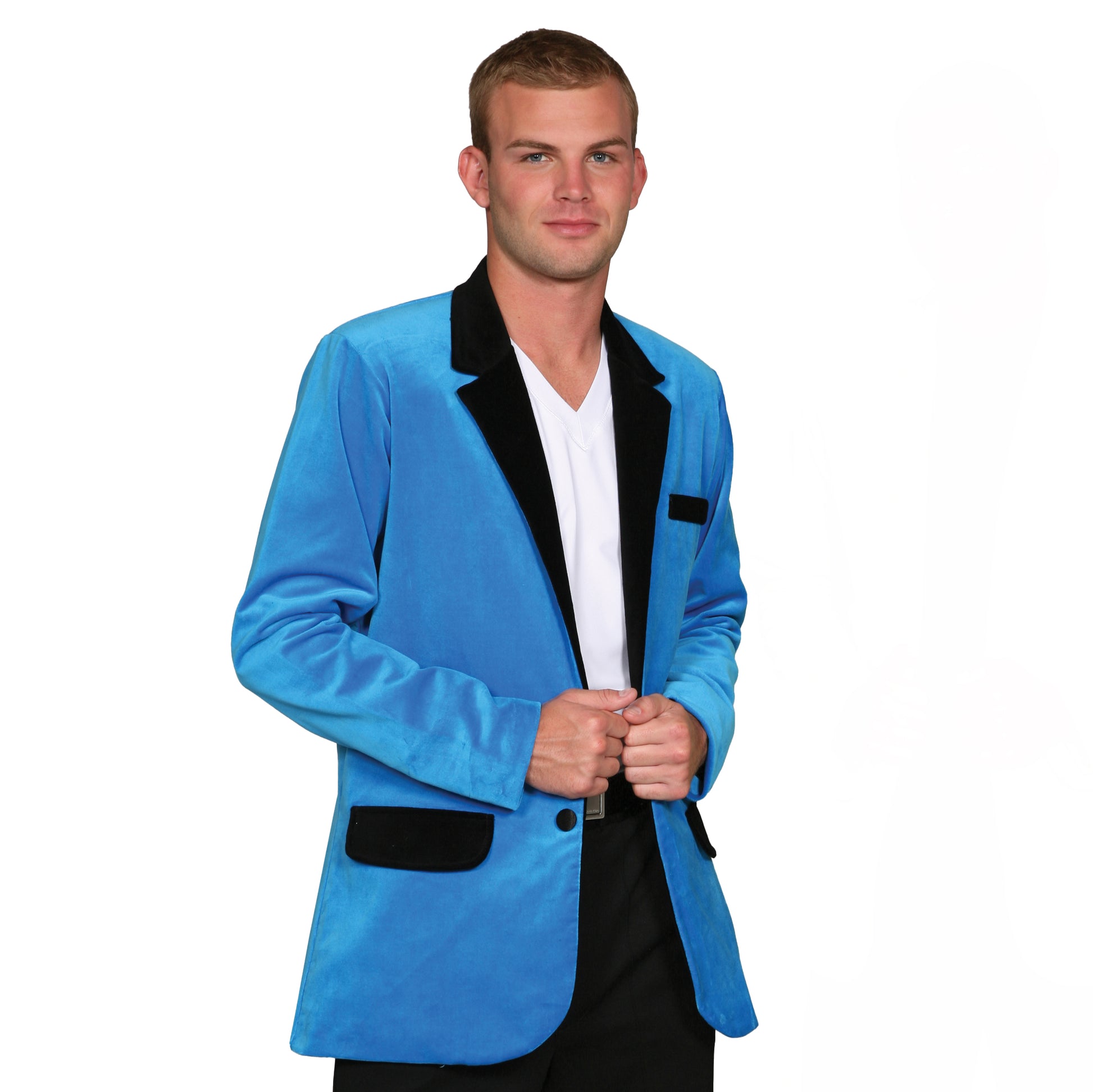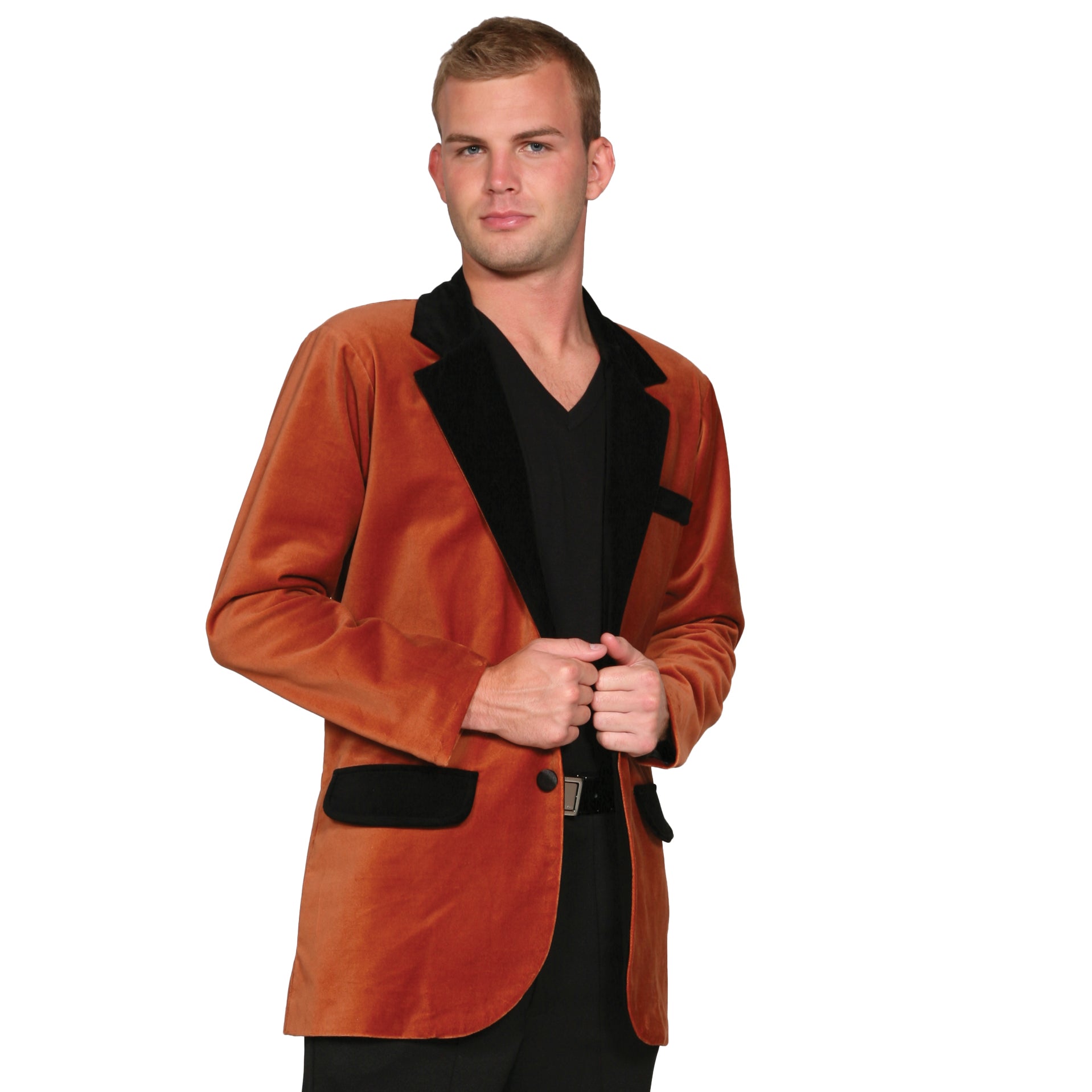 Custom Two-Button velveteen blazer with contrasting faux pocket flaps, lapels, and collar detail. Blazer is fully lined, includes shoulder pads and covered or satin buttons.