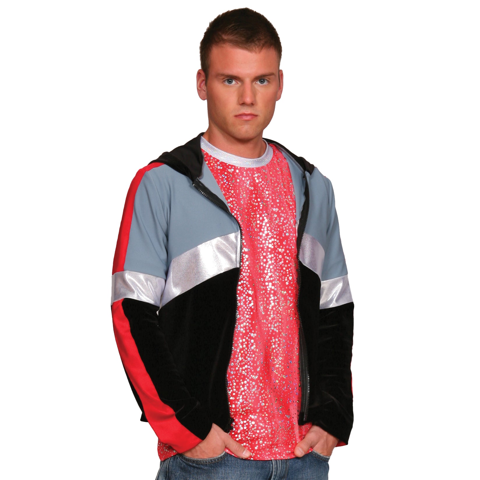 Dry-flex and stretch velvet hoodie is accented with contrasting lycra stripe sleeve detail and metallic lycra center stripe. Galaxy lycra short sleeve shirt with contrasting Digital metallic lycra trim.