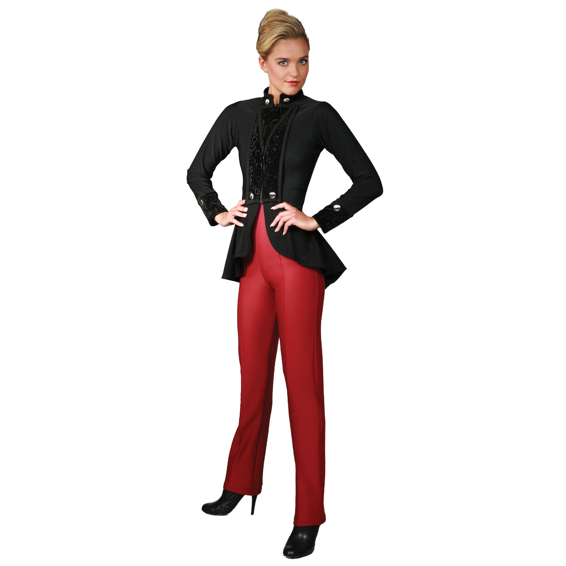 Ottoman peplum style jacket is accented with embossed velvet and silver button detail. Buttons included.