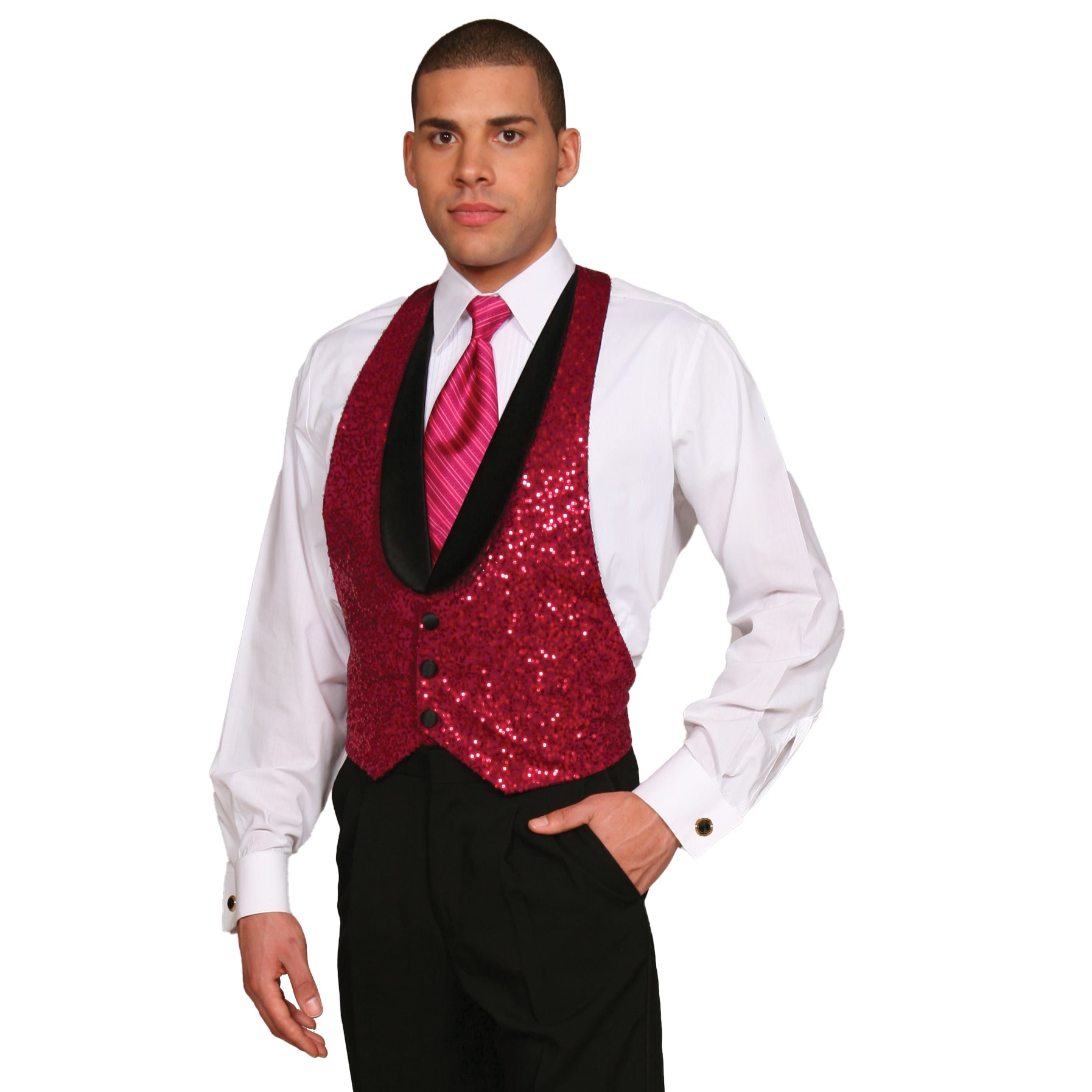 Lined Sparkle Sequin backless vest with adjustable waist and satin lapels. Satin buttons sold separately.