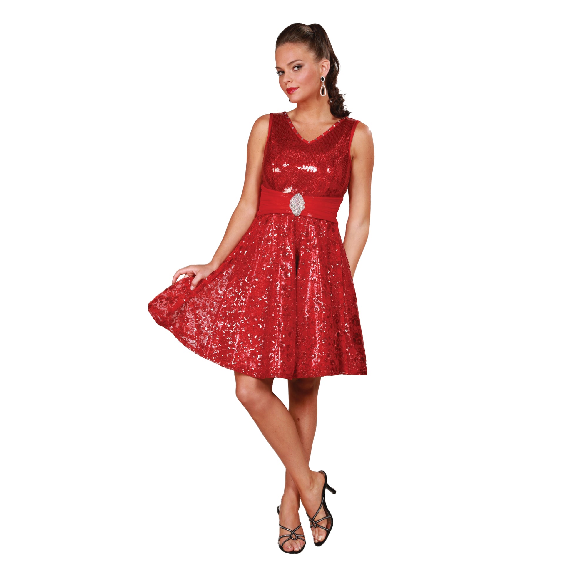 Hologram Stretch Sequin bodice trimmed with lycra and accented with stretch mesh over metallic lycra cummerbund. Bubble Sequin Mesh skirt is lined with metallic lycra. Horsehair braid hem. Rhinestone accents and motif sold separately.