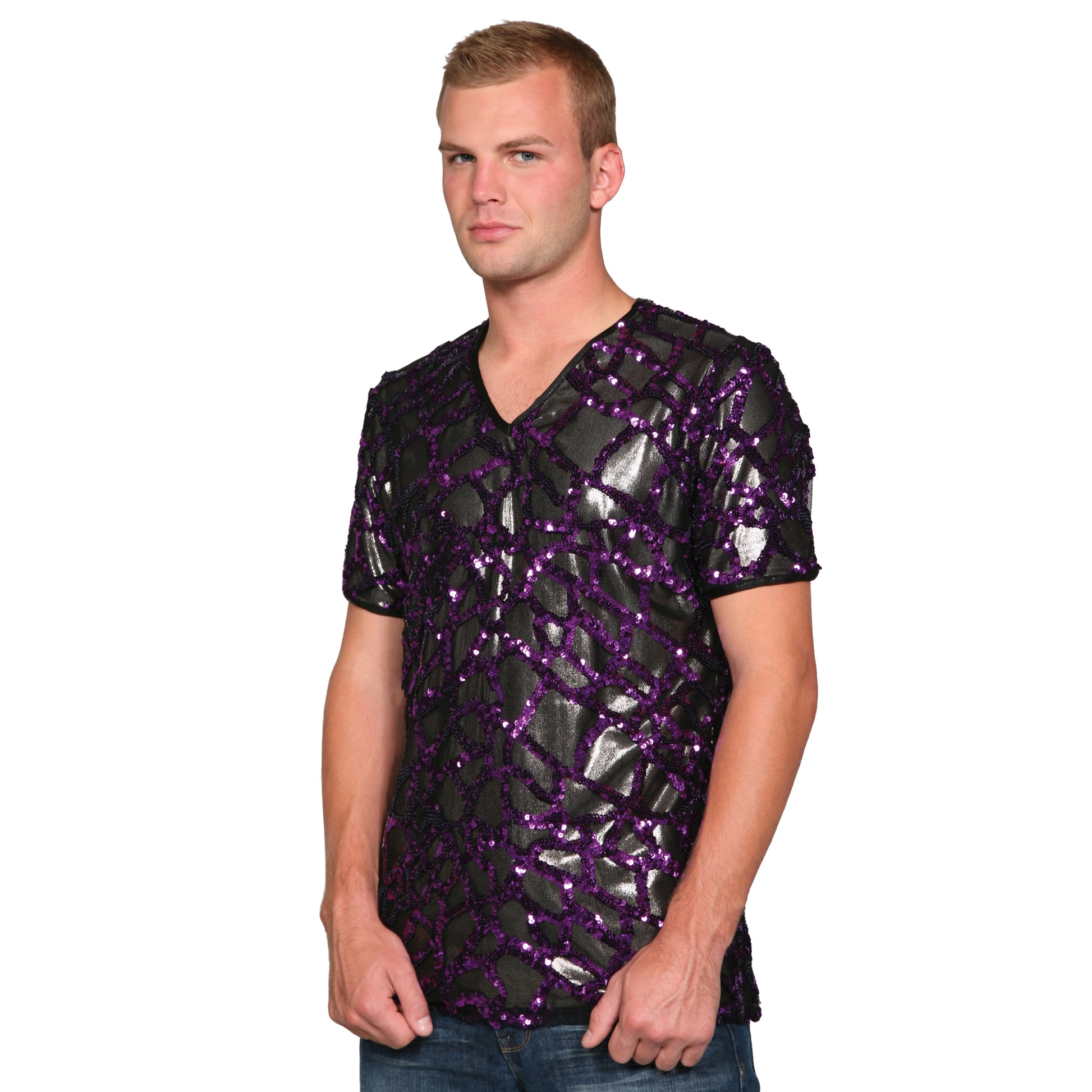 Diva Sequin Mesh over metallic lycra V-neck shirt with lycra trim on collar and sleeves.