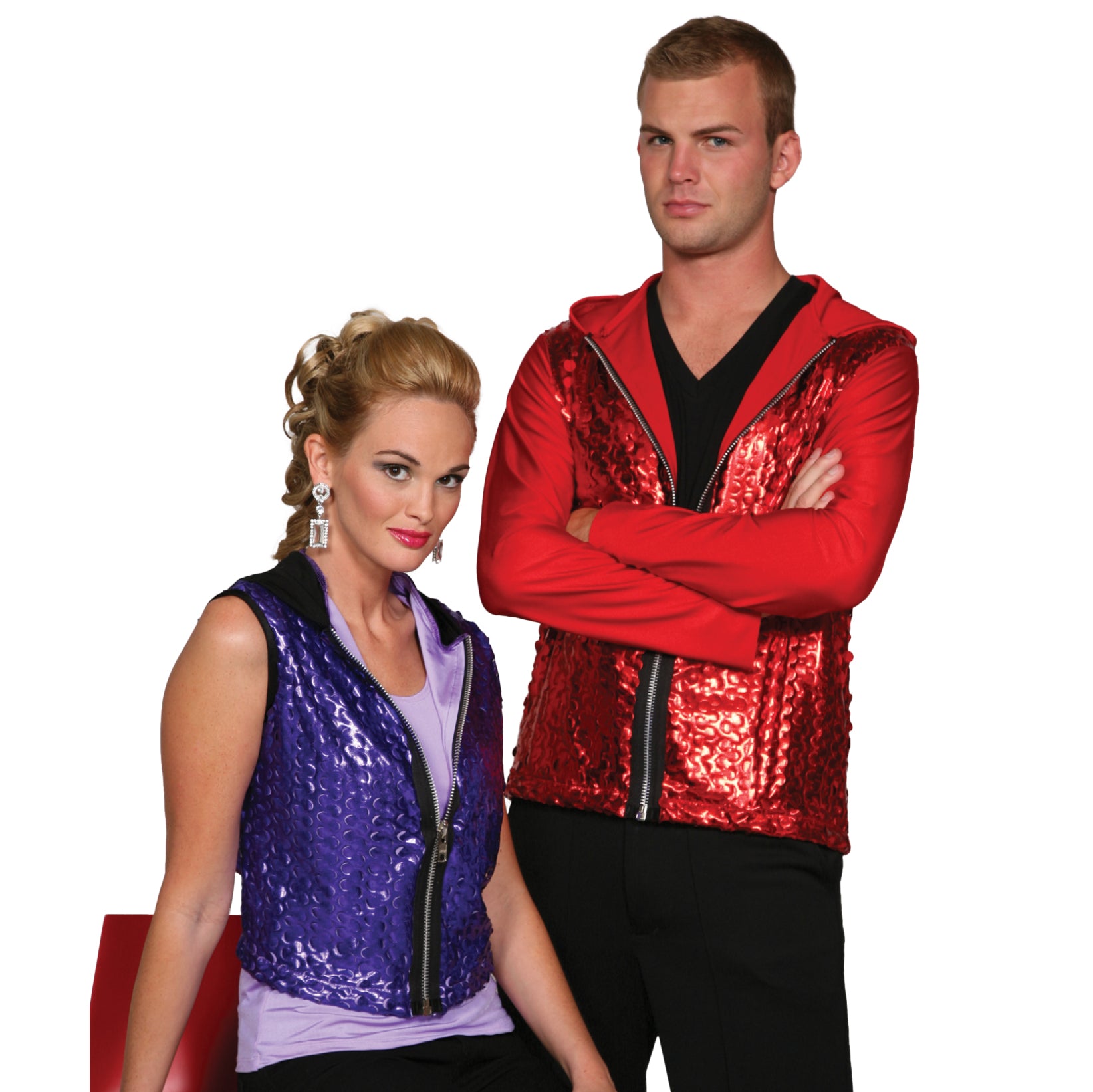 Couples Die-Punched Metallic Lycra Hoodies
