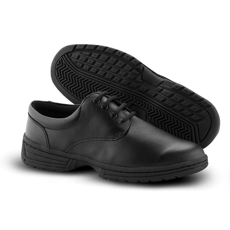 The MTX brags comfort and durability but displays a formal appearance and offers optimal grip in the sole. All shoes feature a pliable upper made of moisture-wicking material with a padded tongue and ankle collar. The PowerBlok heel supports rapid acceleration on step-offs, and the unique design absorbs impact when placing the heel. The X-TremeTrak sole provides maximum grip on all surfaces, wet or dry. A reinforced toe box and a cushioned insole and heel cup offer superior comfort, durability, and support. Add shoe spray in a variety of shades for a unique custom look.