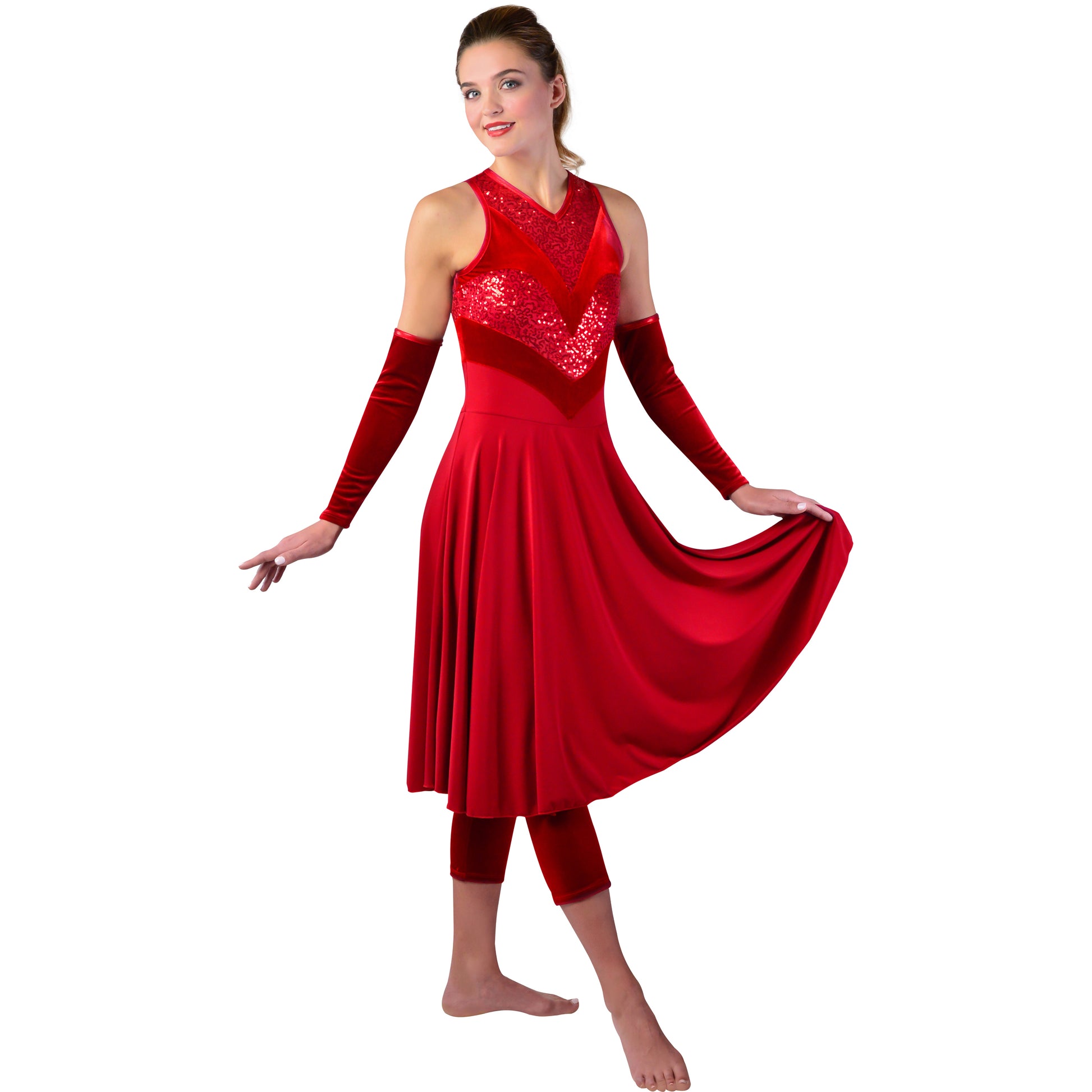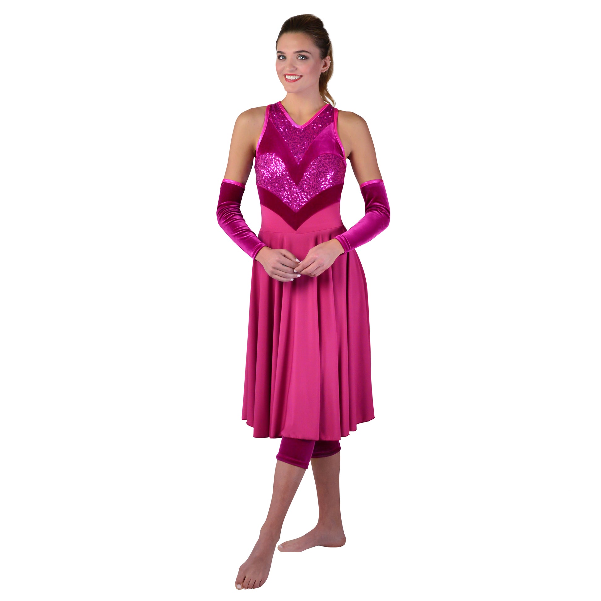 Classic design with gorgeous detailing. Multiple fabric textures add interest, and chevron style lines help flatter a variety of body types. Available in a variety of colors that will compliment any show design or theme. Pair with arm cuffs for a finished look.