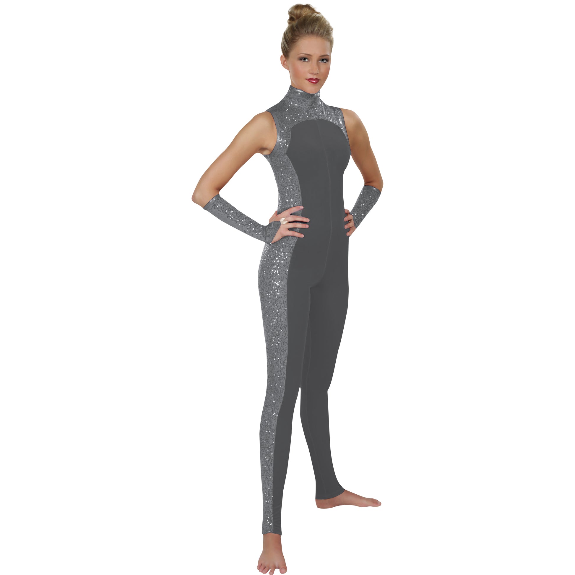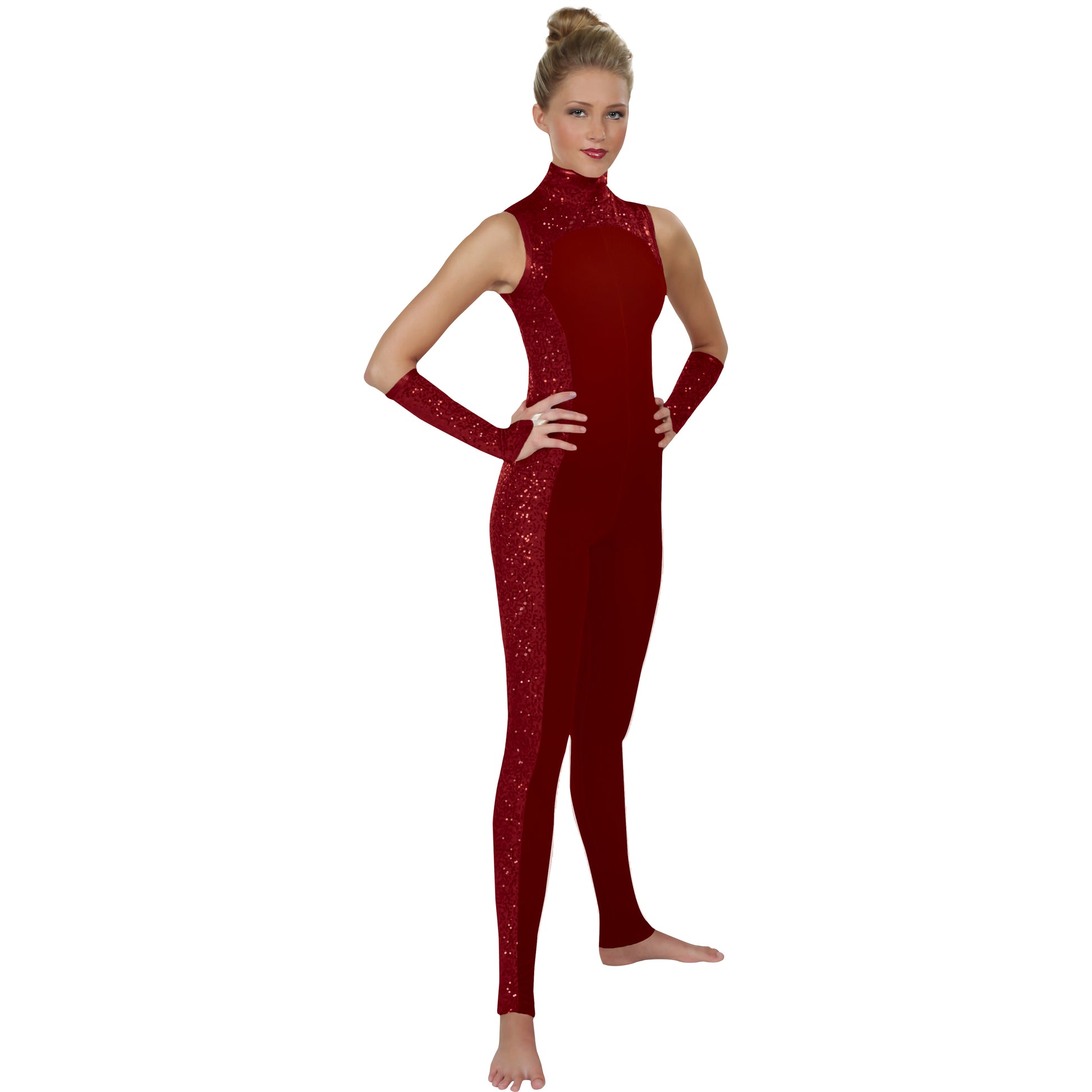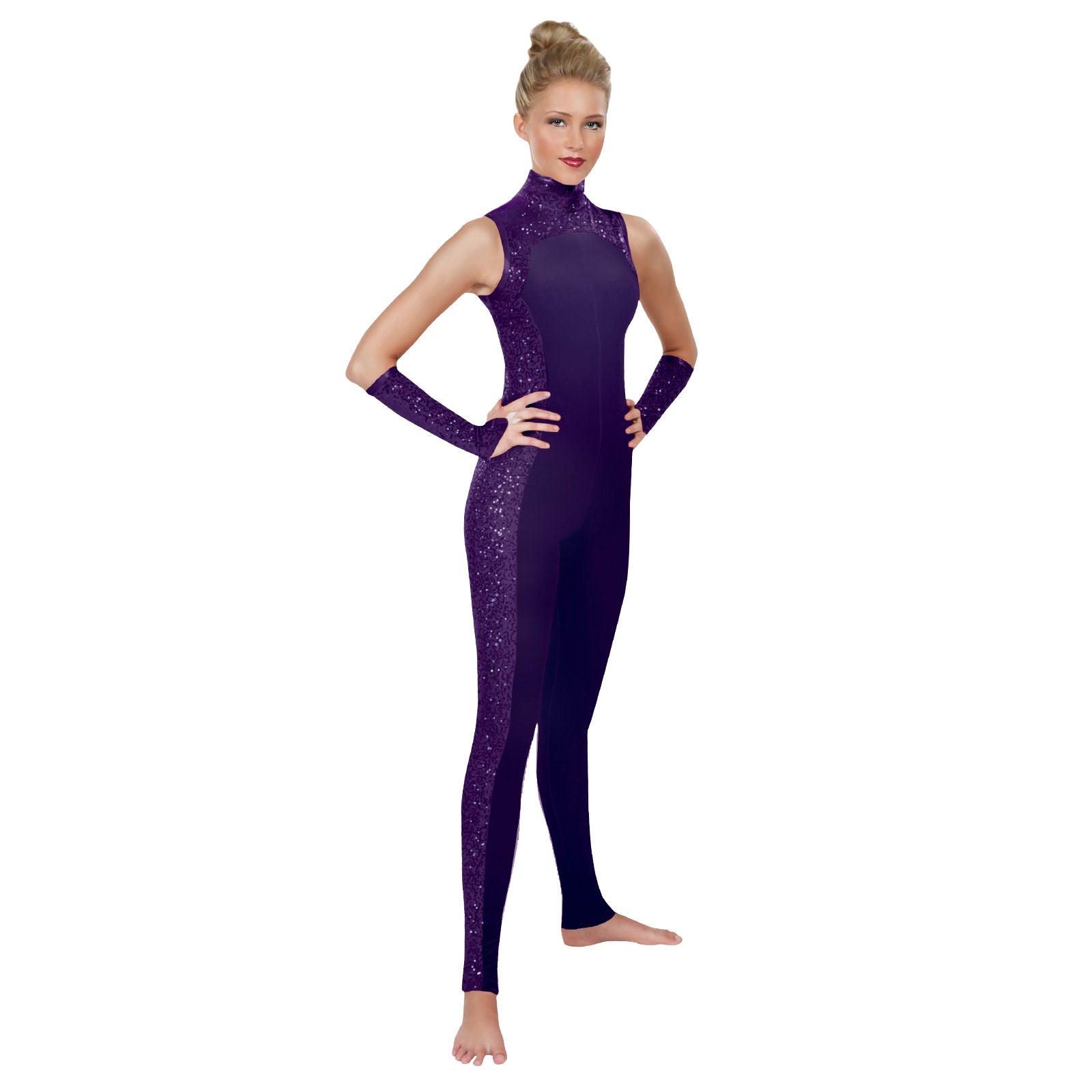 Polished perfection! With a sleek, modern look, and a wide variety of colors to choose from, the Opulent Collection is the ultimate go-to design for any production. Unitard features a lined collar with binding on neck and arm openings for wearable comfort.