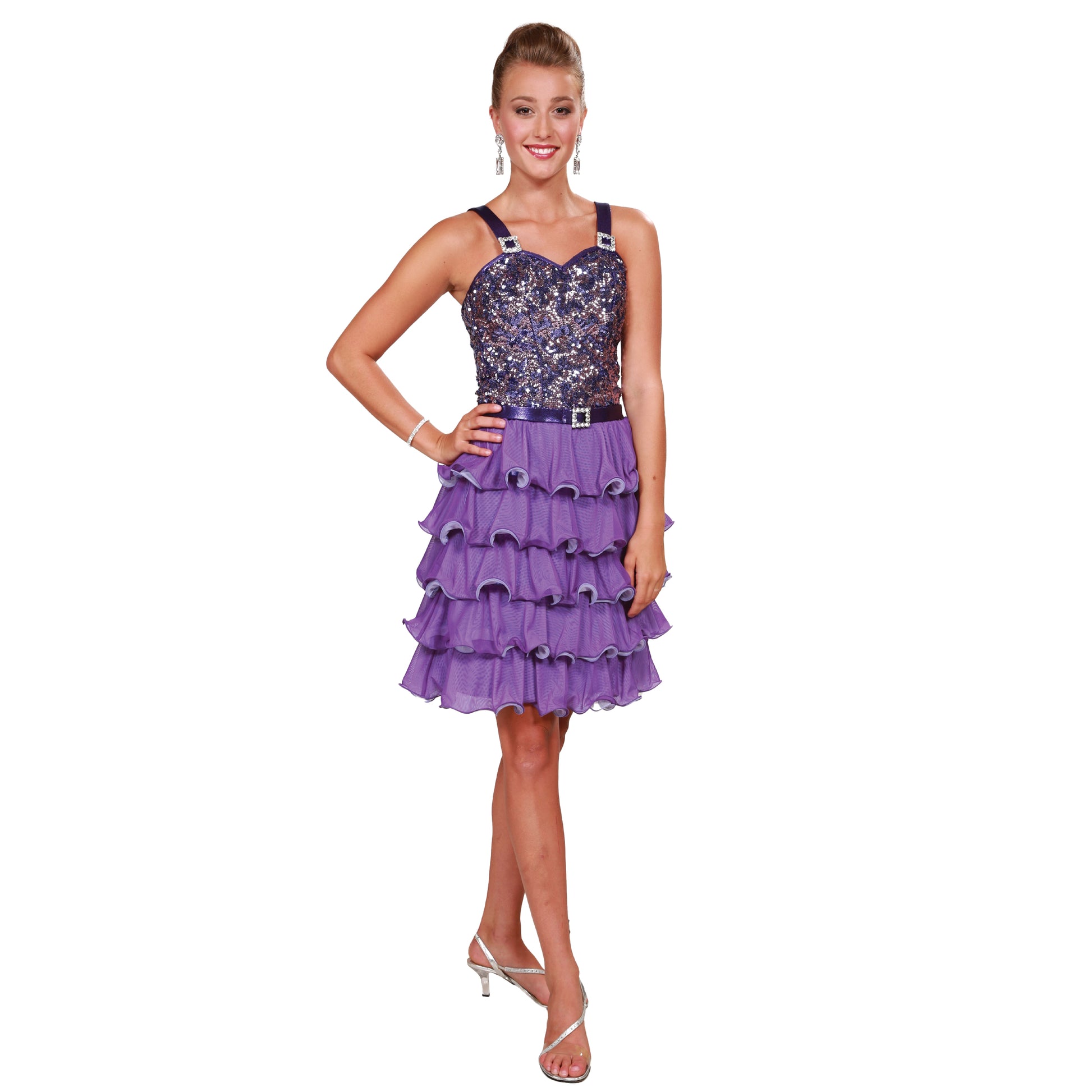 Two-Tone Sequin over metallic lycra bodice with metallic lycra trim and straps. Two-Tone stretch five ruffle skirt with fishline hem. Rhinestone buckles sold separately.