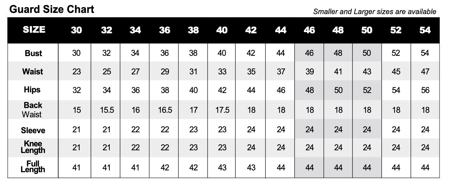 - Use the GUARD SIZE CHART to pick sizes