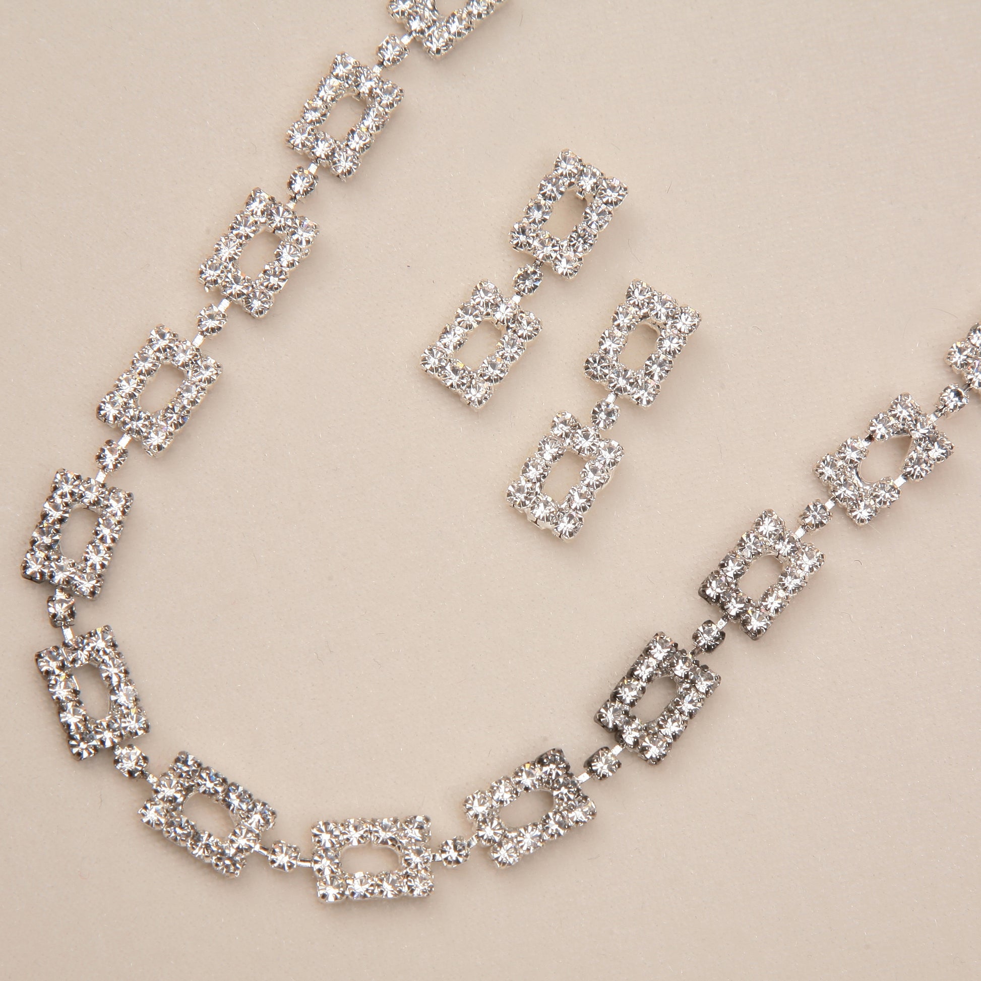 Small Rectangle Rhinestone Choker & Earrings